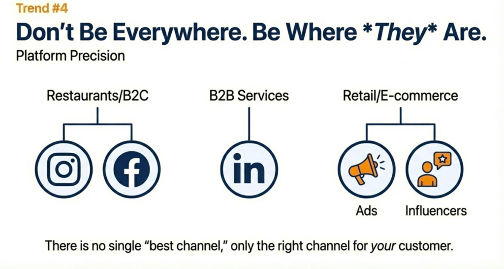 - Restaurants → Instagram + Facebook